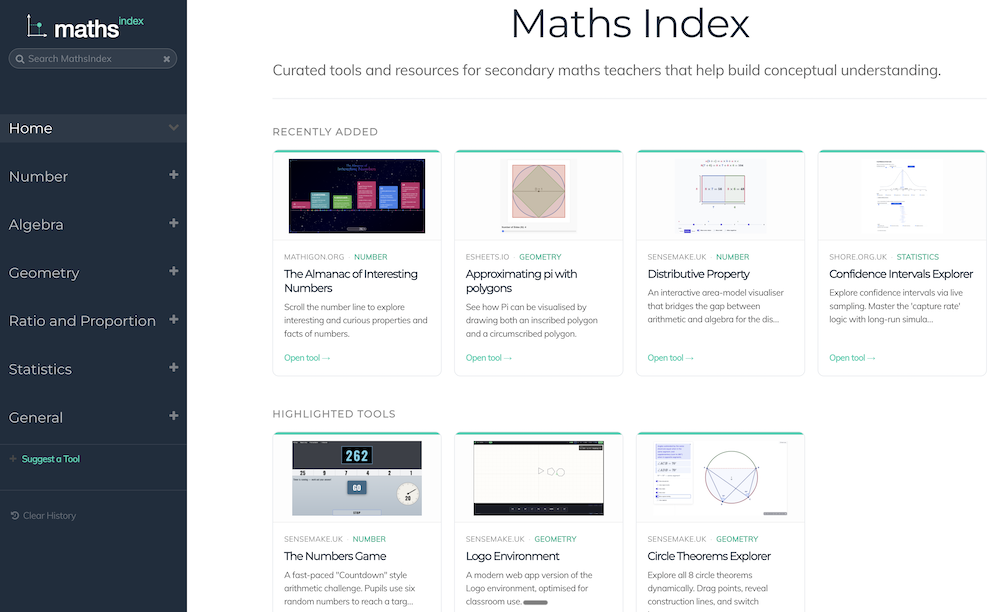 Curated tools and resources for secondary maths teachers that help build conceptual understanding. My attempt at gathering things from around the internet and cataloguing them so that they can be found easily.