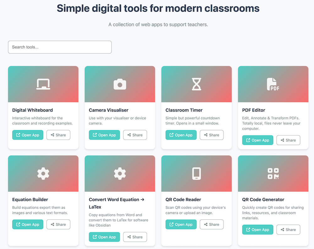 teachteach.tools/ A collection of small utilities for teachers. Mostly built because I needed something.