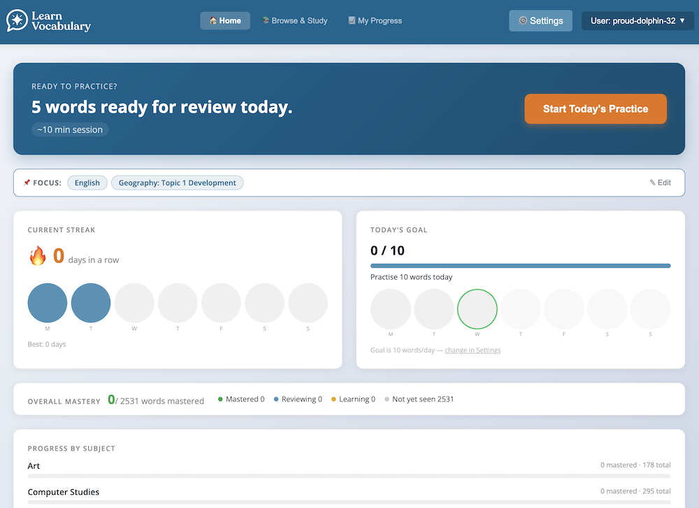 Designed to help pupils learn vocabulary, the Learn Vocabulary app is uses a spaced repetition algorithm and supports multiple quiz and learning modes.