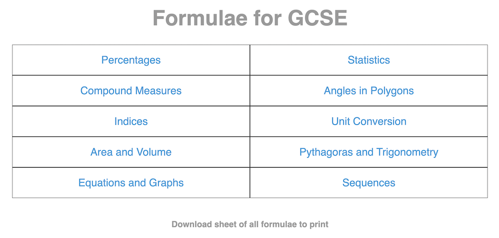 A simple app to help pupils learn the formulae they need for GCSE maths.