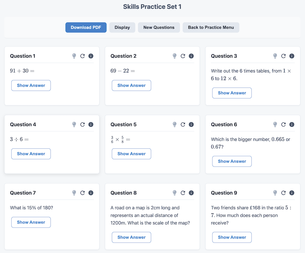 A focused tool to help pupils practice the basic skills and facts that they need to achieve at least grade 4 at GCSE. Intentionally not comprehensive curriculum coverage. More of a scalpel than a swiss army knife.